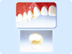 セラミック素材のみで詰めものや被せものに加工します。天然歯に似た色調と透明感があります。