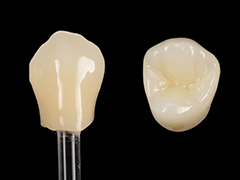 奥歯などの強い力がかかる部位に適した非常に高強度の素材です。細かい色の調整が難しく、他の素材より精密性は少し劣りますが、耐久性には優れています。