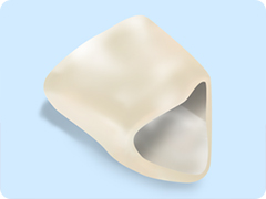 純粋なセラミックの素材です。プラスチック素材に比べて変色しないため、白い歯を保ち続けることができます。審美性、耐摩耗性、抗着色性に大変優れ、舌で触れても、とても滑らかで自然な感触の素材です。