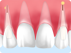 レジンを直接歯に盛り付けて特殊な光を当てて硬化させる処置です。経年により変色することがありますが、歯の色に似ているのであまり目立ちません。