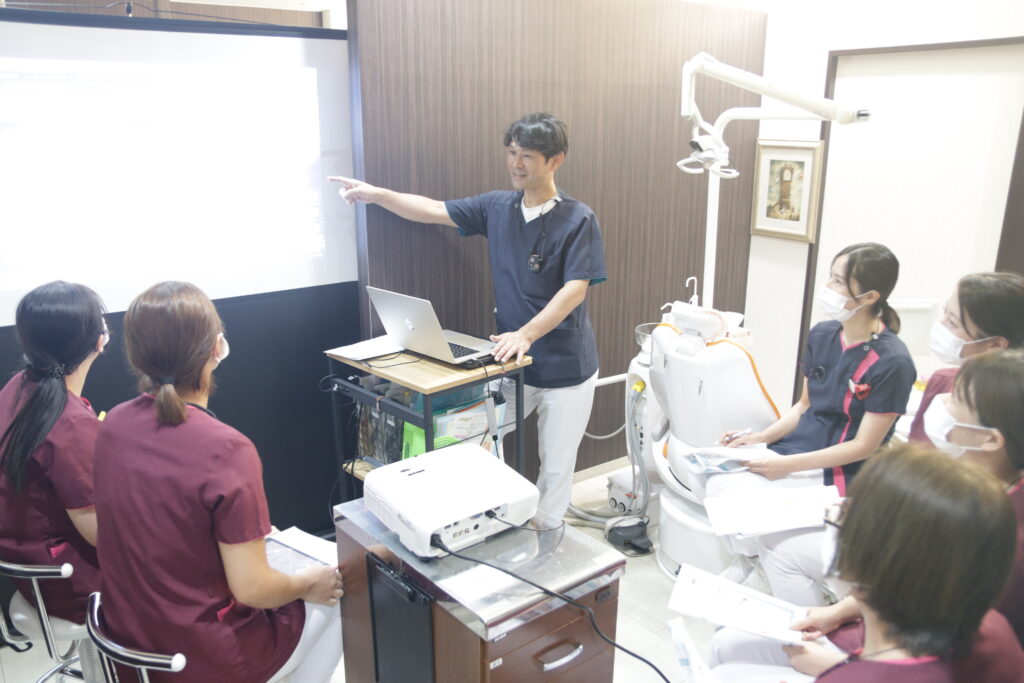 歯科衛生士としてのスキルアップをしっかり支援します。院内勉強会のほか、外部セミナーや講習会への参加費は医院が負担。新しい知識や技術を取り入れながら成長を実感できる、当院はそんな職場です。